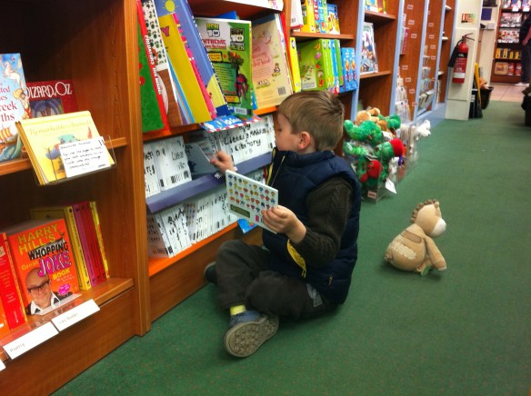 He had a wonderful time today in Waterstone’s in Amersham. He made straight for the Mr Men and Little Miss books – his current favourites, along with Roald Dahl. He’d have happily stayed for hours.