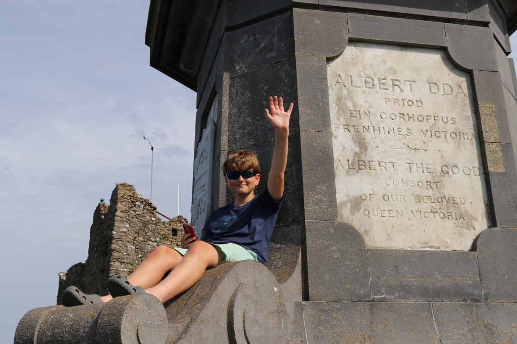 We climbed to admire the views from Tenby castle over the sea and the town.The weather was perfect for exploring today. I remembered the fun I had hanging from the canons at Fishguard and Tenby in 1984, and naturally had to recreated the fun… Needless to say, Owen, 12, had to do the same…