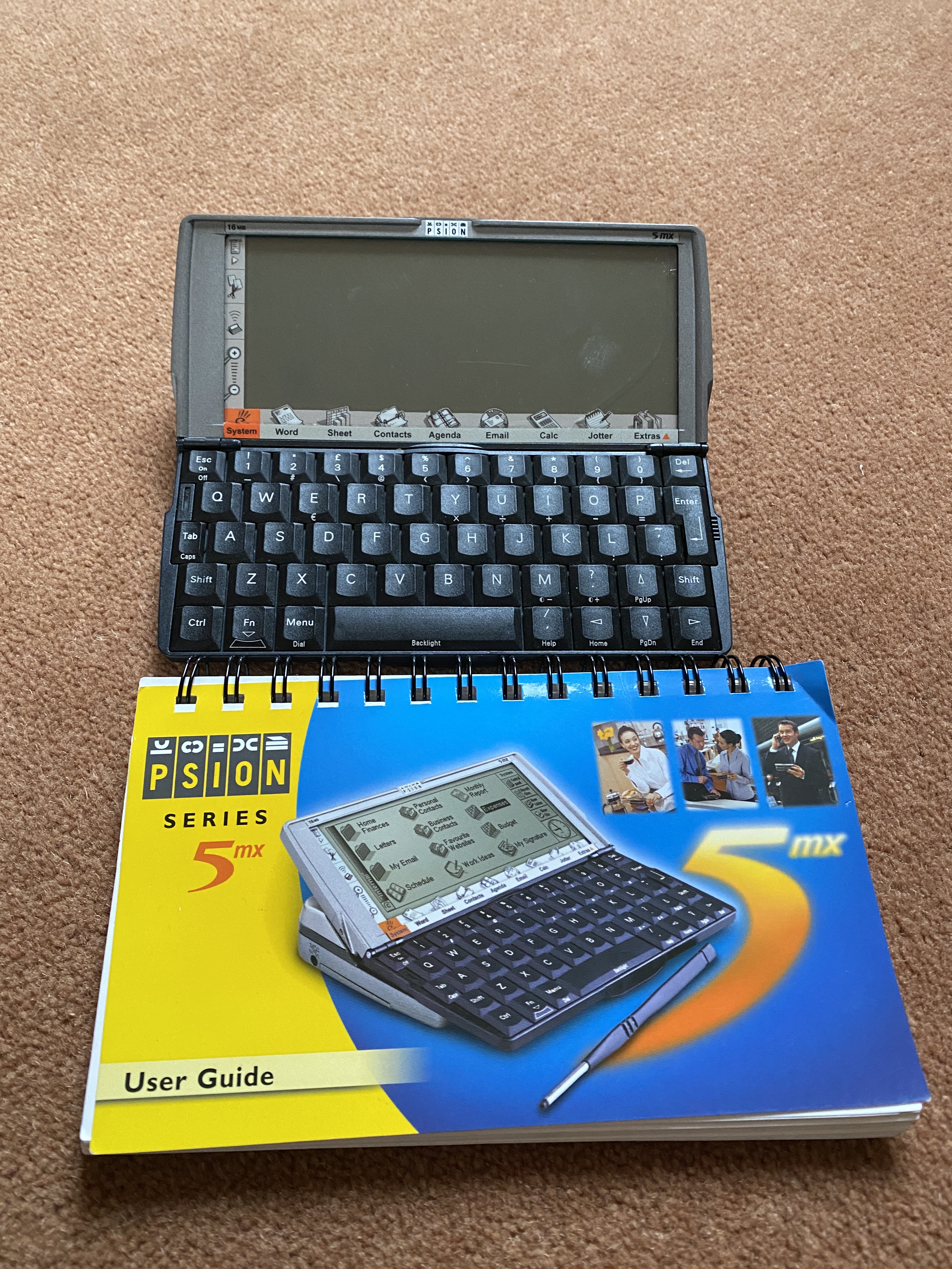 Rarely had I been so excited to unbox a new ‘toy’. It was March 2000, and I’d just driven back to Cardiff from meetings in North Wales. The anticipation kept my tiredness at bay. It was a joy to take my new Psion 5mx personal organiser out of the box and turn it on for the first time.