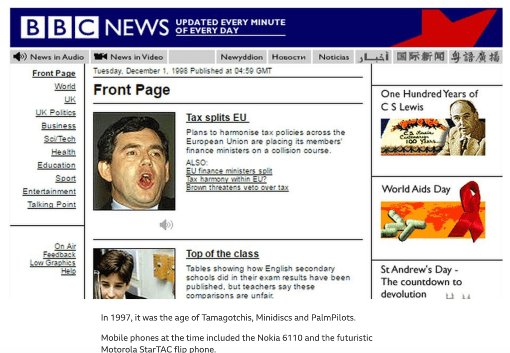 This is what the BBC News website looked like in 1998: