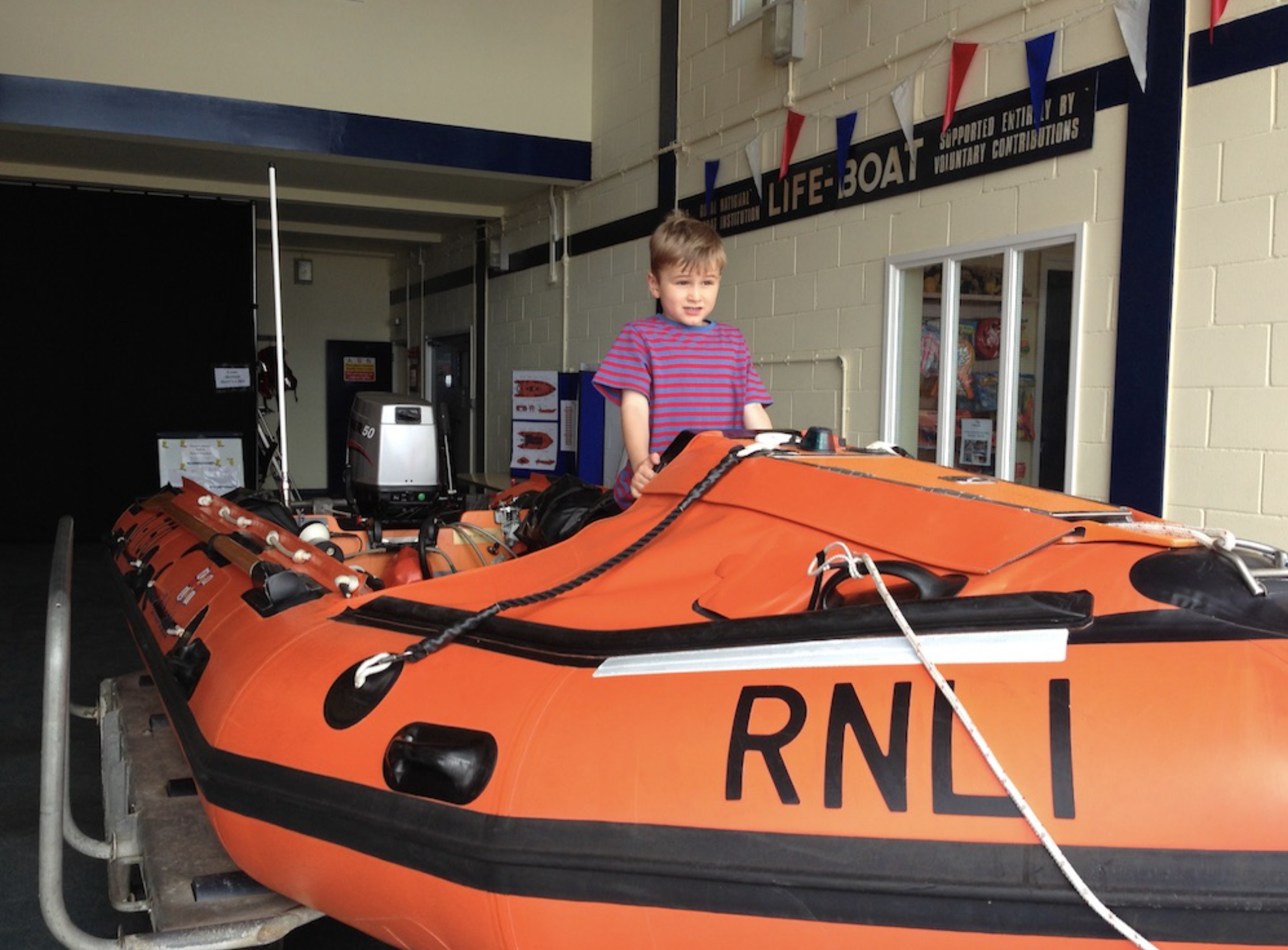 My family has supported the RNLI for many years. My late mother, Rosemary Skinner, volunteered at the RNLI shop in her hometown of Penarth, Wales until her failing eyesight made this impossible. The photo above shows Owen, aged 5, at an open day there during the Penarth festival in 2013.