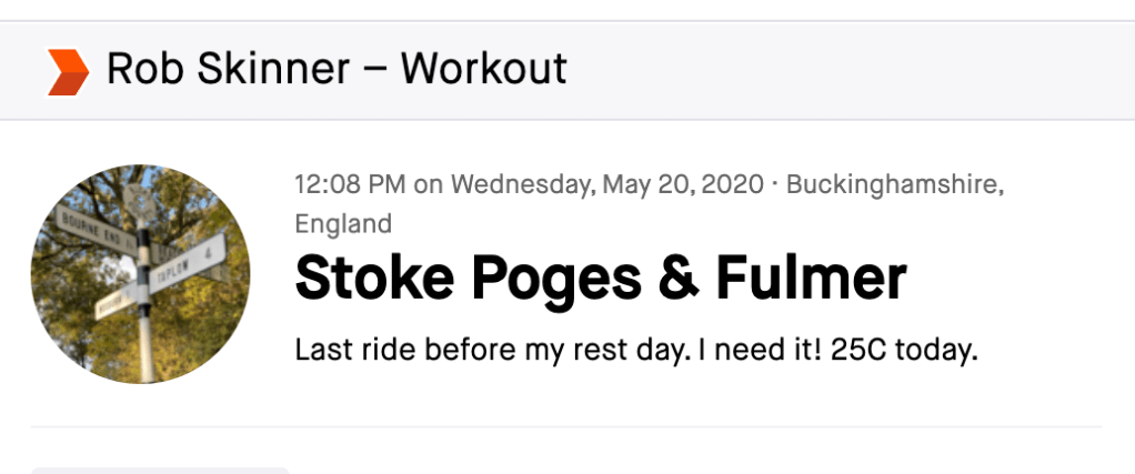 I’ve checked my Strava records and found that on the day of the most notorious Downing Street party, I used my daily exercise to cycle to Stoke Poges and Fulmer.