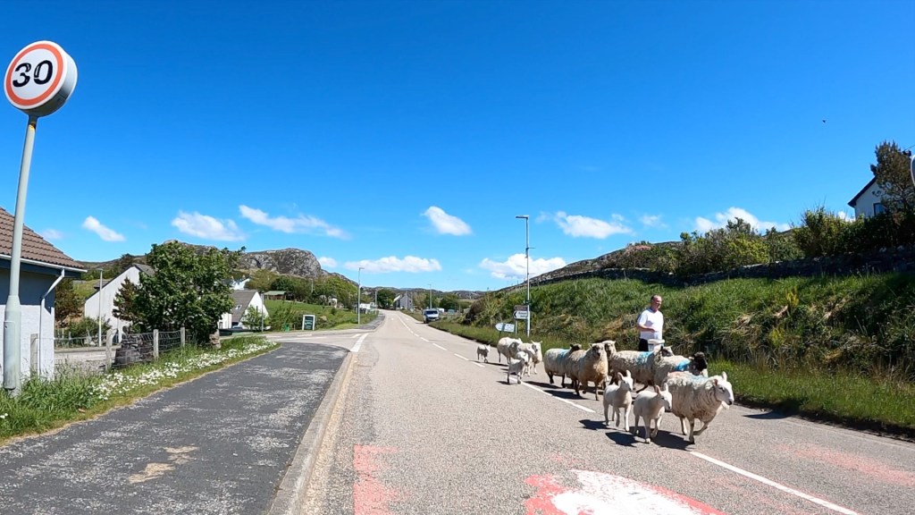 There was one lovely moment when I waited for a flock of sheep to pass down the road in the village of Scourie.