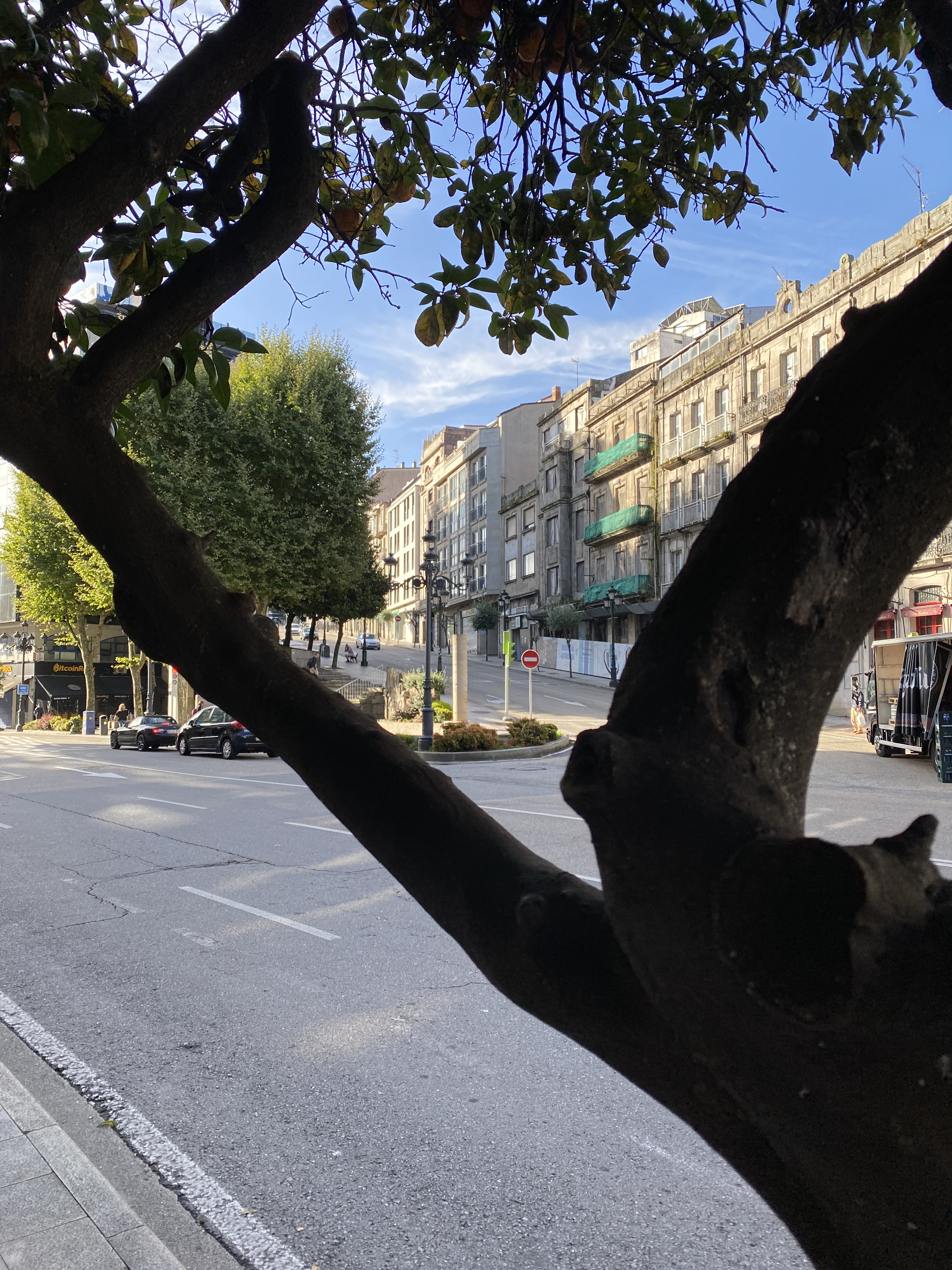 I’ve become so familiar with the hill in the background above. It leads to a large new shopping centre called Vialia Vigo, built over the Vigo-Erzáiz railway station. Each morning I walk up the hill and then through the mall, getting the lift to the plaza on Rúa Via Norte, the street leading to the Vithas hospital, where Dad has been treated for 10 days.
