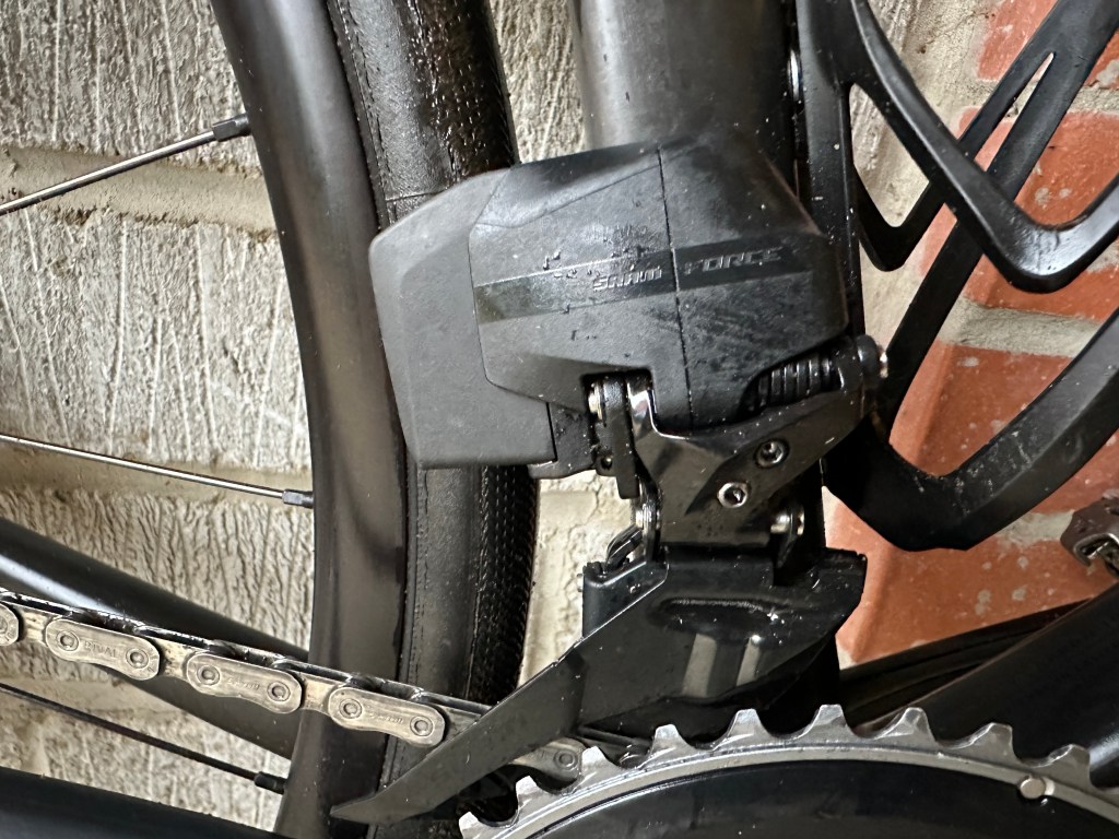 Dees tried everything to solve the problem. They adjusted the indexing of the gears. They stripped the bike down and rebuilt it – twice. They even replaced the front derailleur as a SRAM warranty repair. This seemed to have done the trick: my first ride afterwards passed without incident. The next time was a different story, as the old problem happened on my first front gear change.