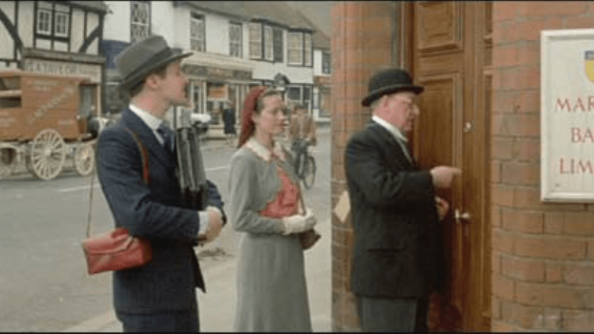 The 1971 film version of Dad’s Army was largely filmed in our village, Chalfont St Giles, Buckinghamshire. Walmington on Sea has rarely been so far inland! The old Crown pub took on the guise of Martin’s Bank (manager, Captain Mainwaring), as seen below. In real life, the building is now empty after brief stints as Crown Coffee, and before that Costa Coffee as I blogged in 2014. It is due to reopen as Durans Bistro later this year.