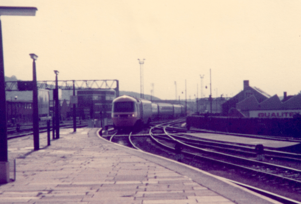 Many of my early HST trips were to visit my older sister Beverley, who got married and moved to Swindon in 1976. I took the photo above on one of those visits, enjoying the sight and sound of the train racing through the Wiltshire countryside. (I used a Kodak Instamatic camera, also designed by Kenneth Grange.) Later, I took advantage of the expanding HST route to travel between home in Cardiff and university in Leicester – as seen below in my June 1983 photo of the 17.47 from Cardiff to Derby, which will take me as far as Birmingham.