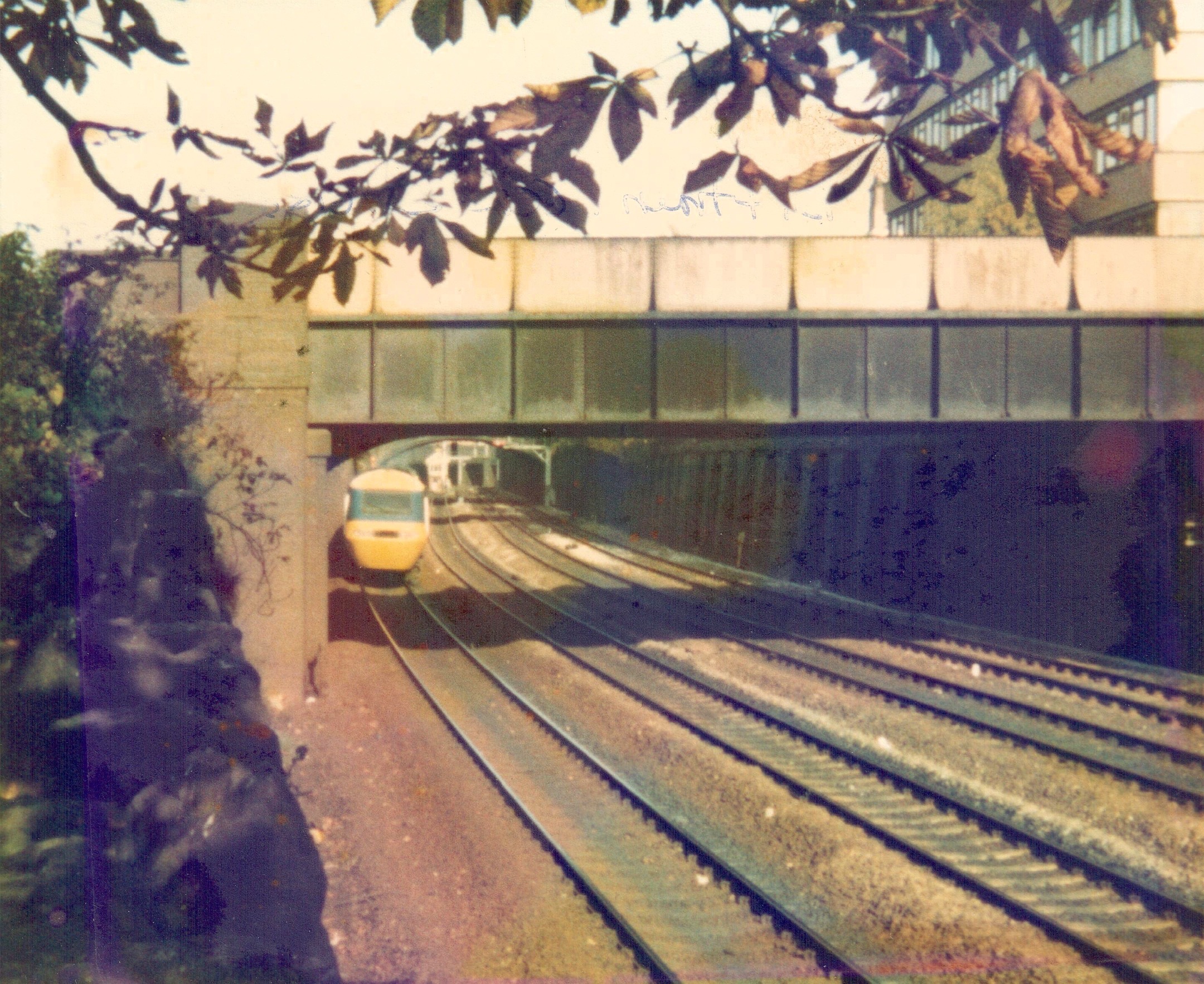 Many of my early HST trips were to visit my older sister Beverley, who got married and moved to Swindon in 1976. I took the photo above on one of those visits, enjoying the sight and sound of the train racing through the Wiltshire countryside. (I used a Kodak Instamatic camera, also designed by Kenneth Grange.) Later, I took advantage of the expanding HST route to travel between home in Cardiff and university in Leicester – as seen below in my June 1983 photo of the 17.47 from Cardiff to Derby, which will take me as far as Birmingham.