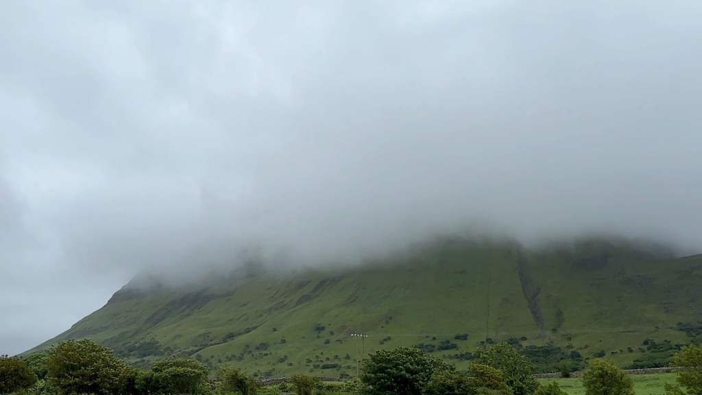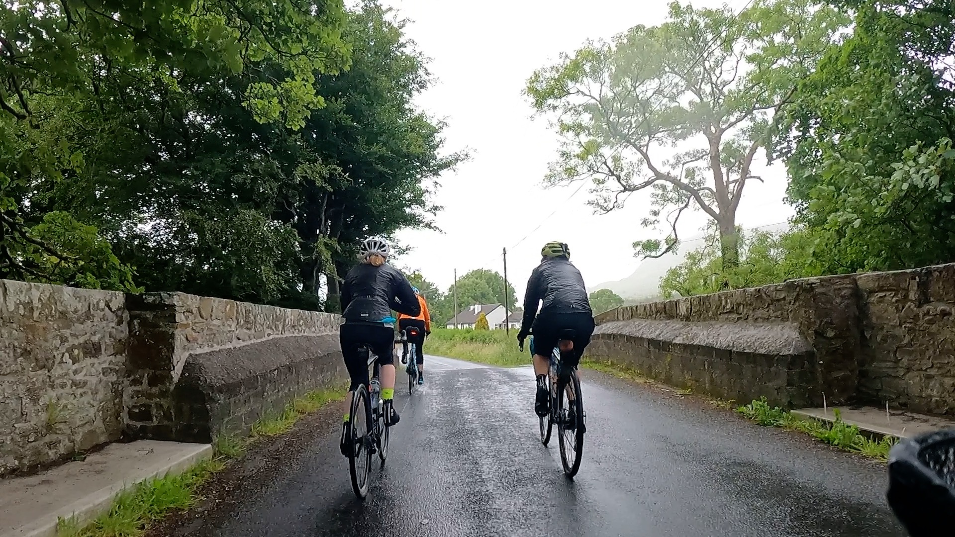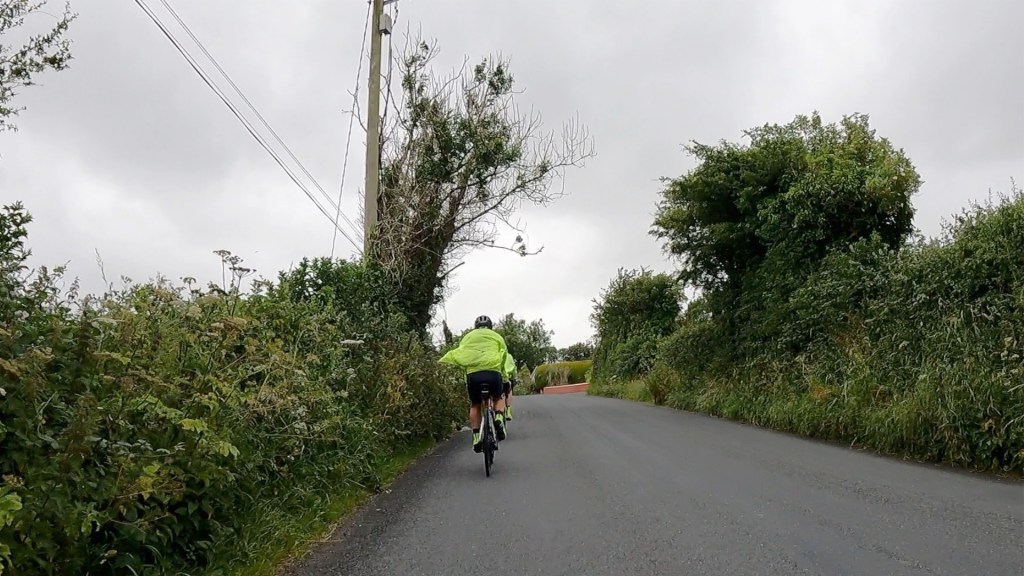 It was dry, if windy, for the first hour or so out of Sligo – and hilly, with one of the steepest climbs of the whole tour, at 17% early on. The mist was hanging over the hills and people’s rain jackets were flapping in the wind.