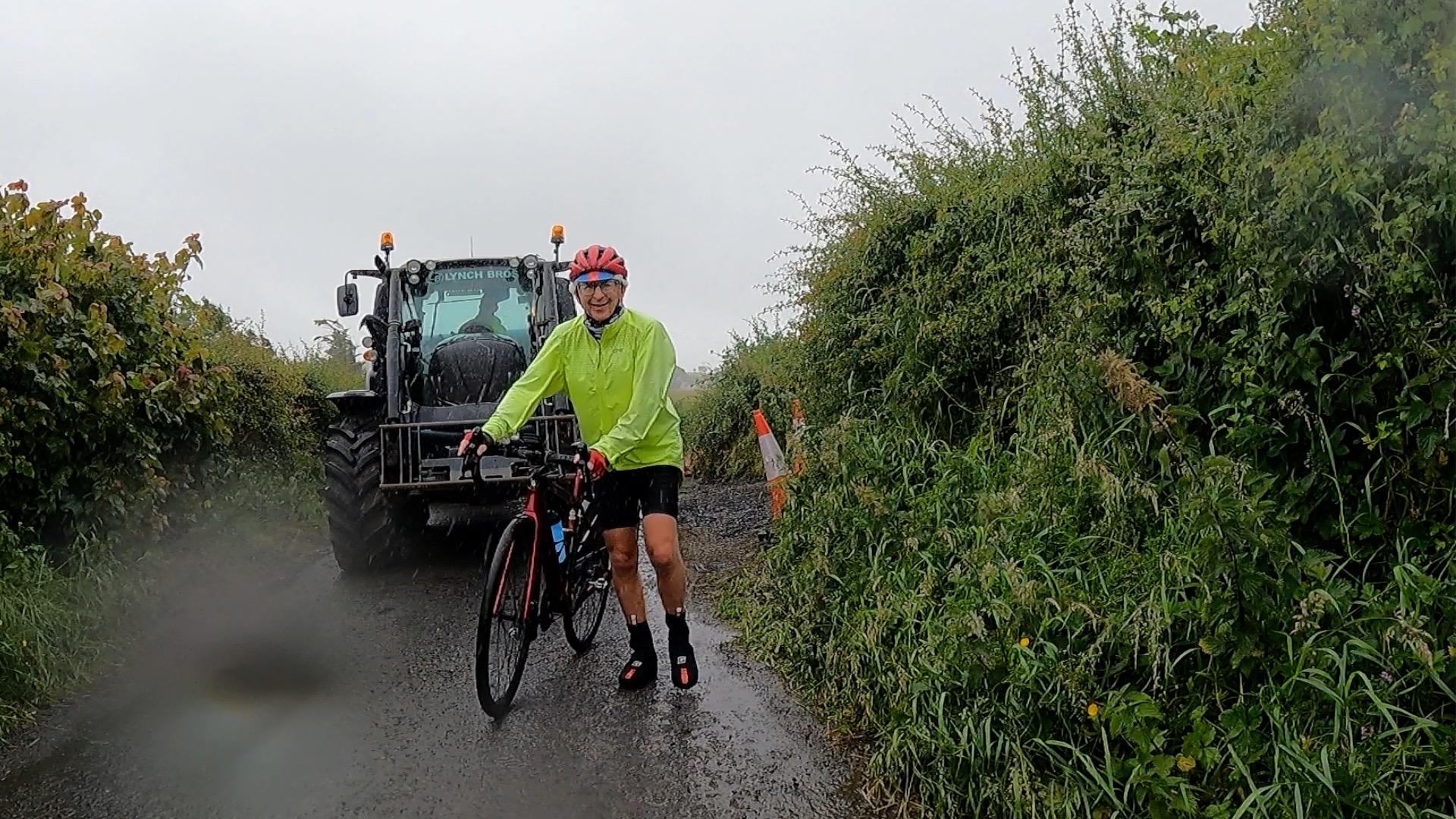 As Ken and I came to a t-junction, we found Mark in the Peak Tours van. At this point the tour usually has a lovely section along Rossnowlagh beach, but given the conditions we were diverted to an inland route to the Sandhouse Hotel next to the beach. ‘Is it too dangerous to continue?’ Mark asked us. I replied that it was OK for now – but I dramatically changed my mind in the next 15 minutes!