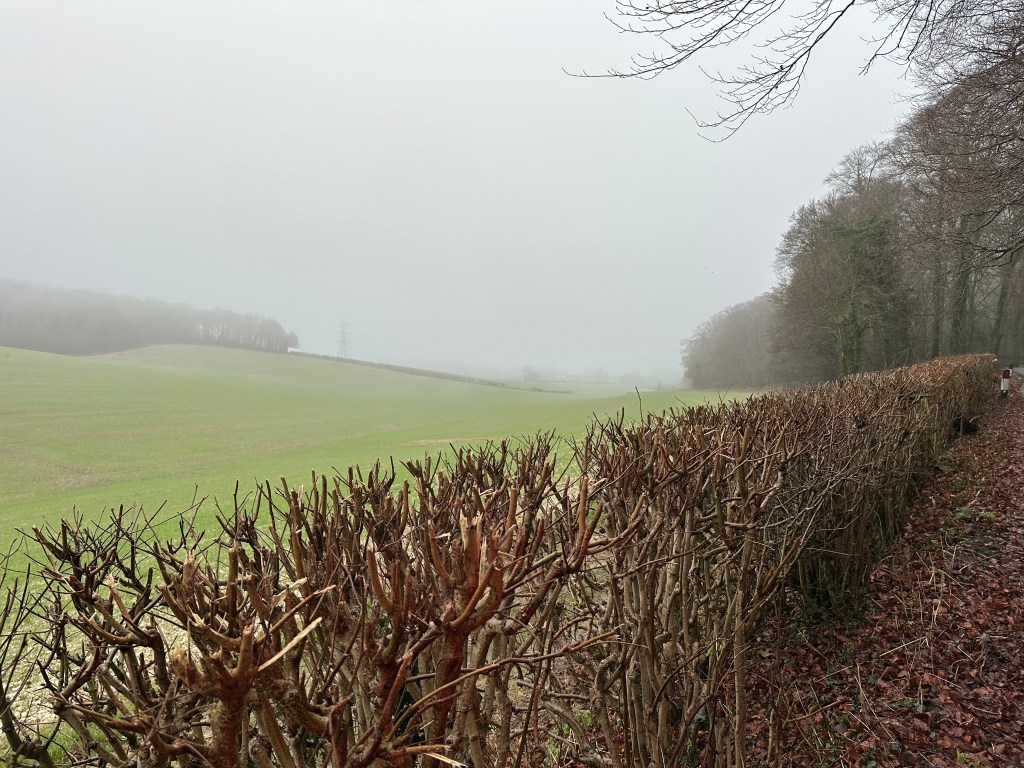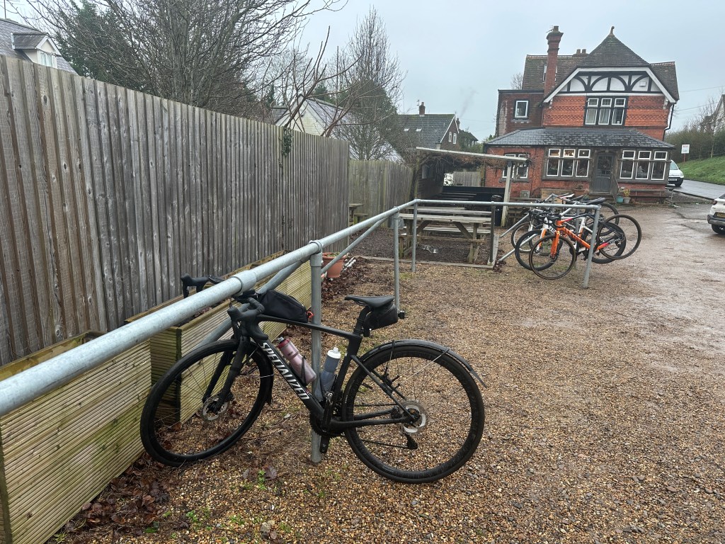 I saw a signpost for our village and felt a pang of regret that I wasn’t heading there for a hot bath, a mug of steaming tea and a sweet treat. I still had many misty miles to go, but took pleasure in the easy ascent from Chorleywood towards the familiar road to Amersham. My original route descended from Chenies but I decided to avoid the steep climb of Holloway Lane to Chesham Bois by following the faster, flatter main road to Amersham. I had plenty of time to reflect how the mist made me colder and wetter than the weather forecast led me to expect. Would I have been better off had it been colder and clearer? I’d have been happier, for sure. But if I am to take part in London Edinburgh London in 2025 I’d better get used to feeling uncomfortable on the bike!