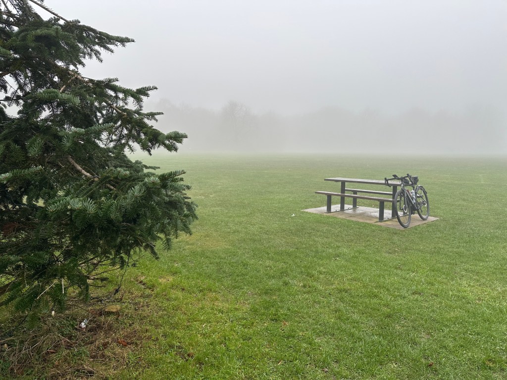 I was also puzzled how Komoot thought this 41 mile ride would take over three hours – longer than another planned Festive 500 ride over 50 miles. Komoot was right. This was not a fast ride. And the mist was ever present, seeping into every pore. The only saving grace was that I decided to add another (third) layer just before setting off. A genius move.