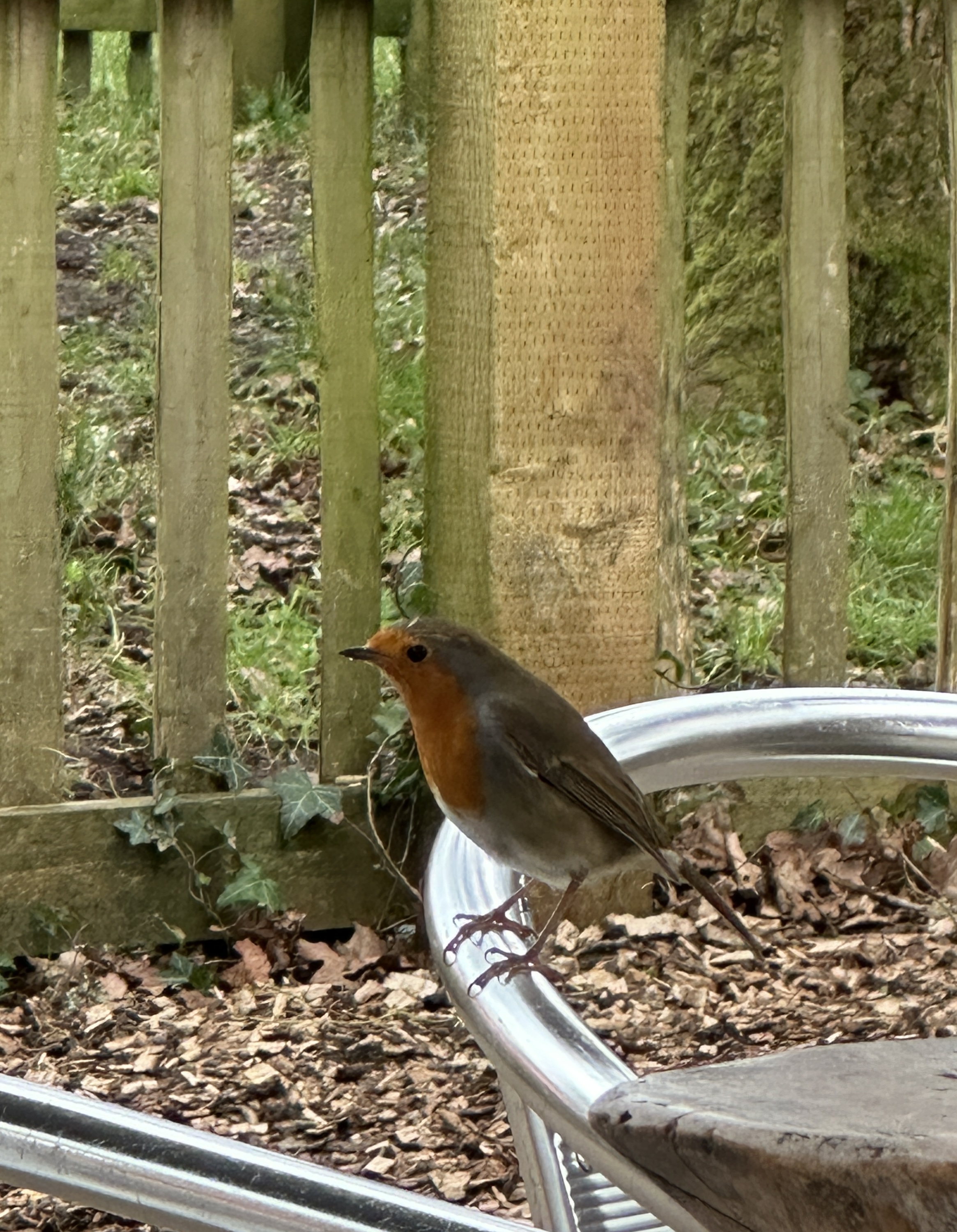 It was a straightforward ride, but I did stop for a quick coffee at Burnham Beeches cafe, where I was delighted to see this robin at the next table. As I parked my bike, I enjoyed a good humoured banter with a family whose children were using the bike stand as a playground.