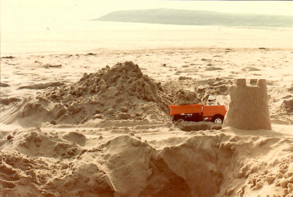These photos give a clue why Barry Island has such a place in my heart. They were taken during my final university summer break, in July 1984. Dad, then aged 57, is carrying his granddaughter Ria, aged one, while I am pictured making a sandcastle with Ria and my sister Boo (Beverley). That year was the second heatwave summer in a row, making Barry an obvious destination.