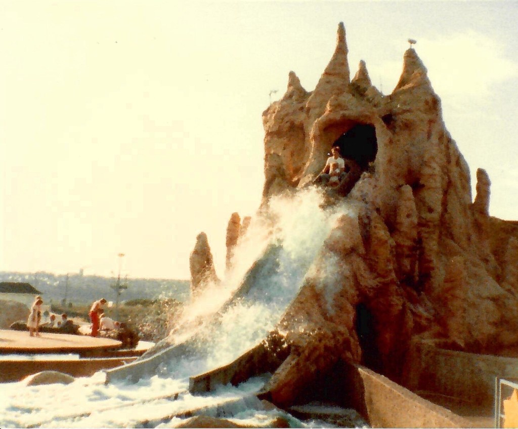 The pleasure park with its rides was the other family attraction, and here I am about to descend the log flume with niece Siân, then aged three. We had more fun than the following year, when my Dad suggested I take Siân into the haunted house, which she found terrifying…