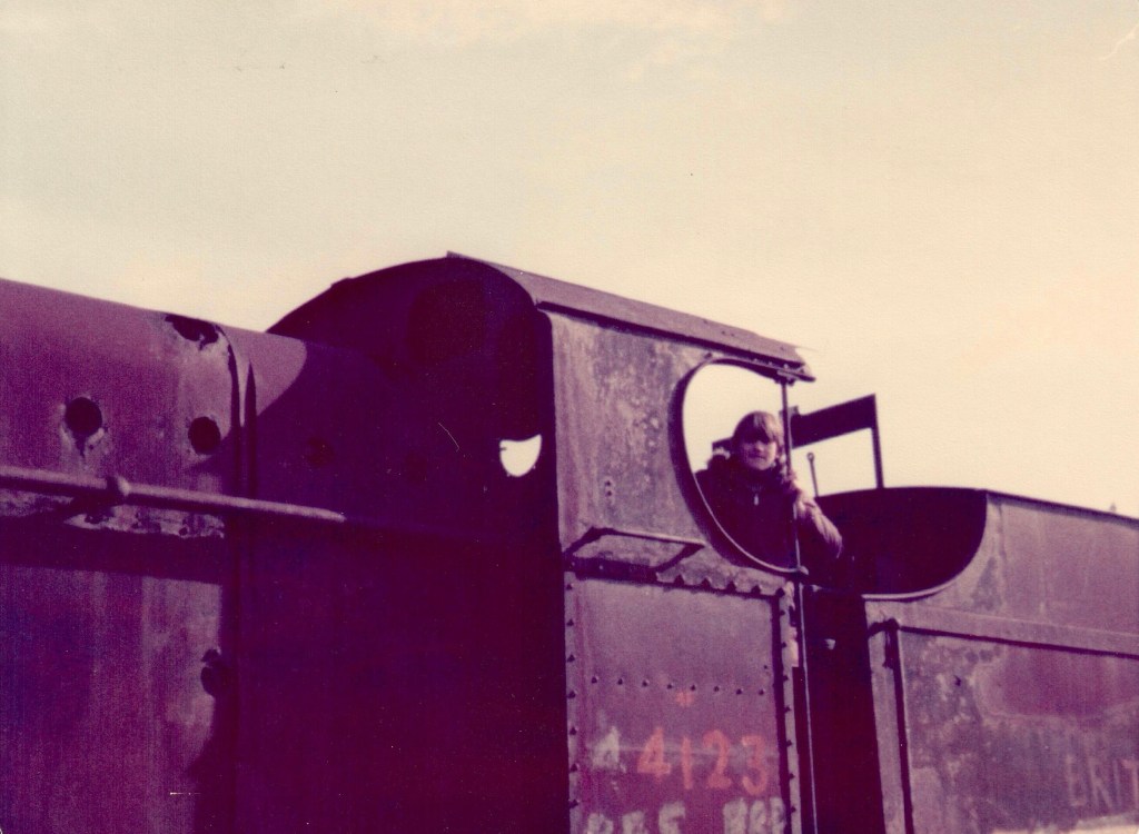 This is the earliest photo I can find of a visit to Barry scrapyard, showing me aged 15 on the footplate of a handsome LMS 4F freight engine. 4123 is 100 years old this year, and being restored by the LMS Society. Its website gives the history of the locomotive here.
