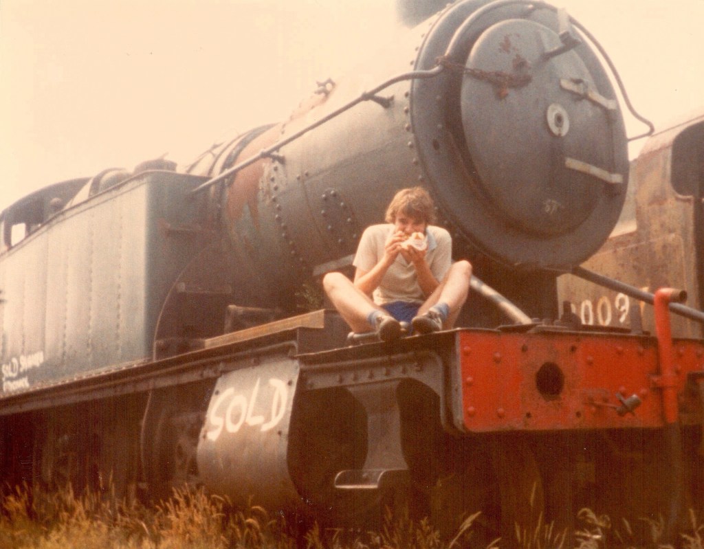 It’s amazing to think that as teenagers we could walk into a scrapyard of rusting steam engines without any restrictions. I’m not sure I’d choose to have a picnic on an abandoned heavy freight engine today, as I did on this GWR 2-8-0T tank engine, 4270, in July 1983.