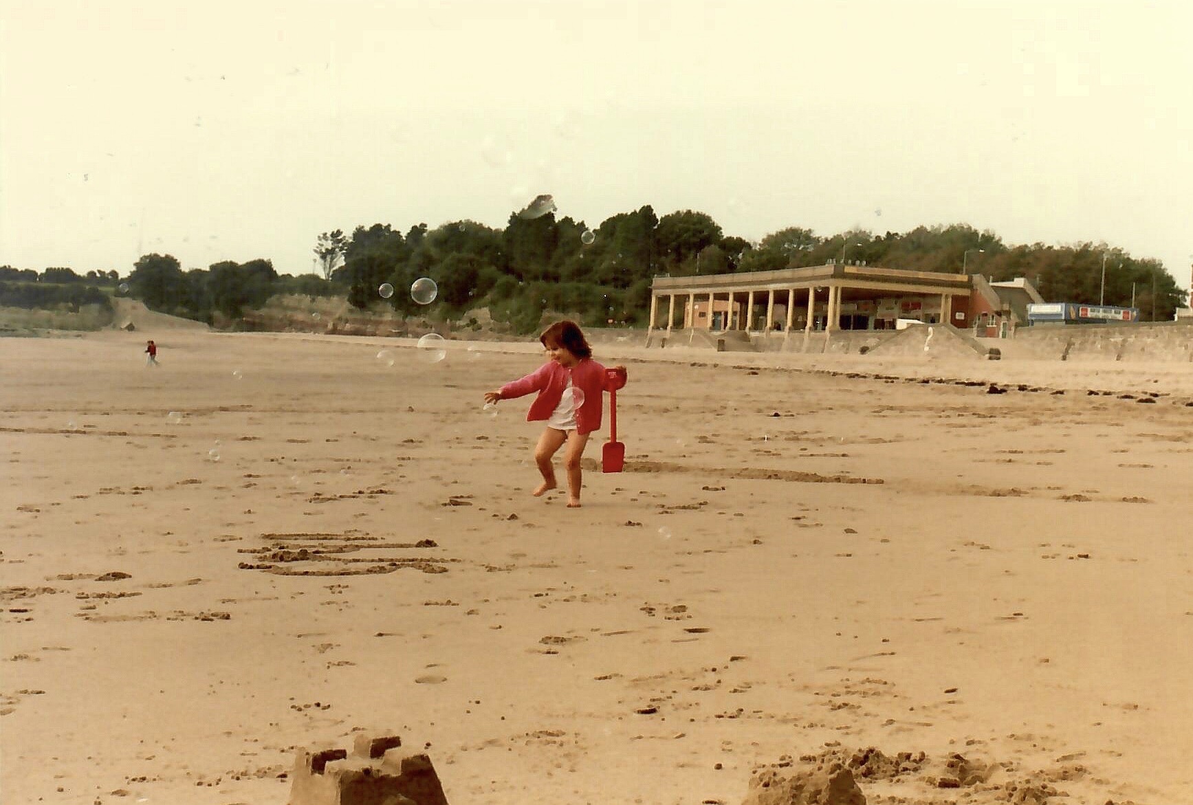 These photos give a clue why Barry Island has such a place in my heart. They were taken during my final university summer break, in July 1984. Dad, then aged 57, is carrying his granddaughter Ria, aged one, while I am pictured making a sandcastle with Ria and my sister Boo (Beverley). That year was the second heatwave summer in a row, making Barry an obvious destination.