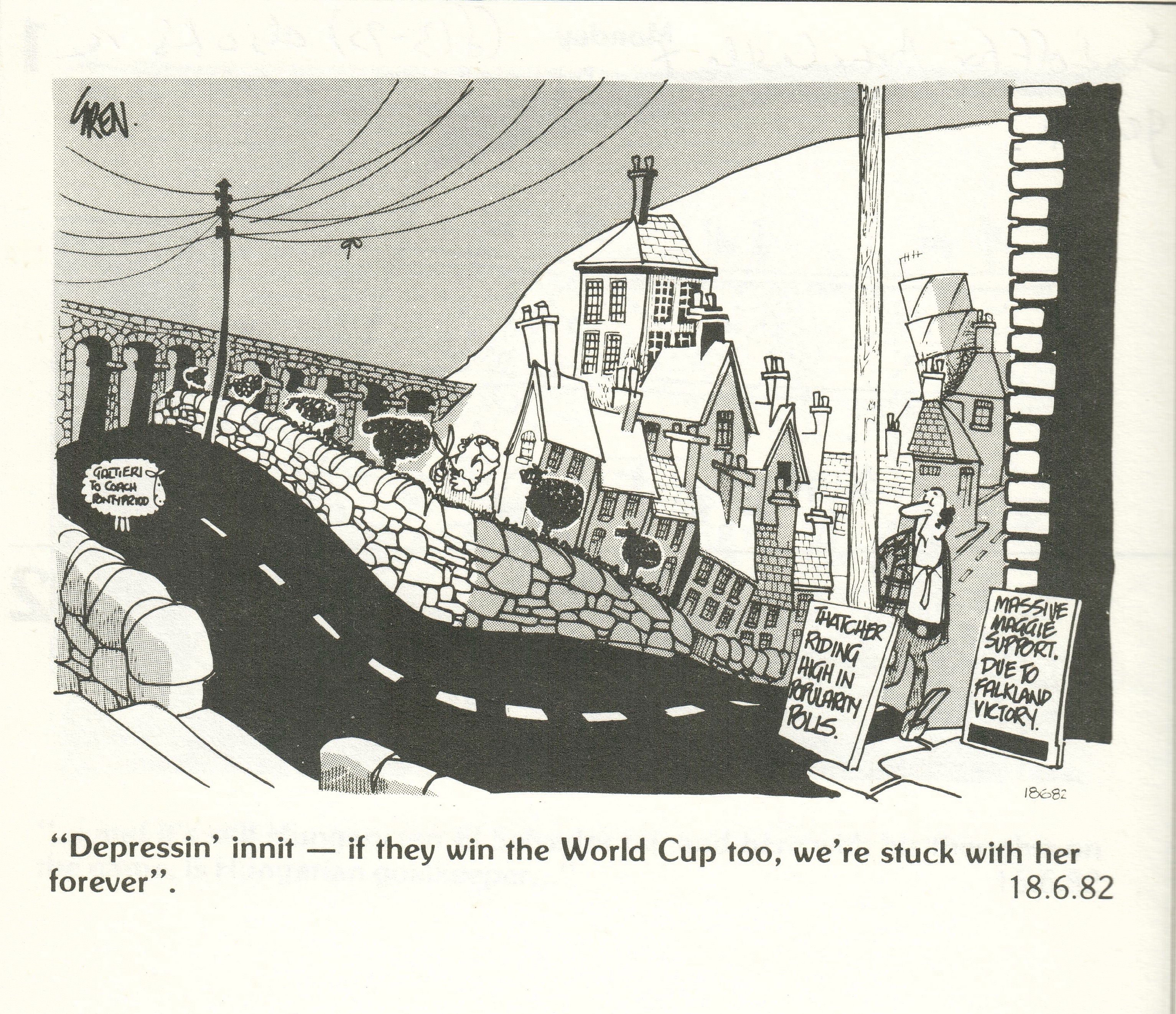 Not everyone shared this triumphant mood. Hundreds of young British and Argentinian men had died, and others such as Simon Weston from South Wales suffered life changing injuries. Some criticised the British response as a colonial action, out of place in the late 20th century. I myself in my 1982 diary noted, ‘The lull after the initial storm in this, Britain’s last colonial war’. Yet the description is misleading. The 1,800 residents of the Falklands wanted to remain under British rule, not that of a brutal Argentinian dictatorship that attached electrodes to the genitals of its opponents and threw them out of aircraft to their deaths. Britain was fighting to uphold their right of self determination.