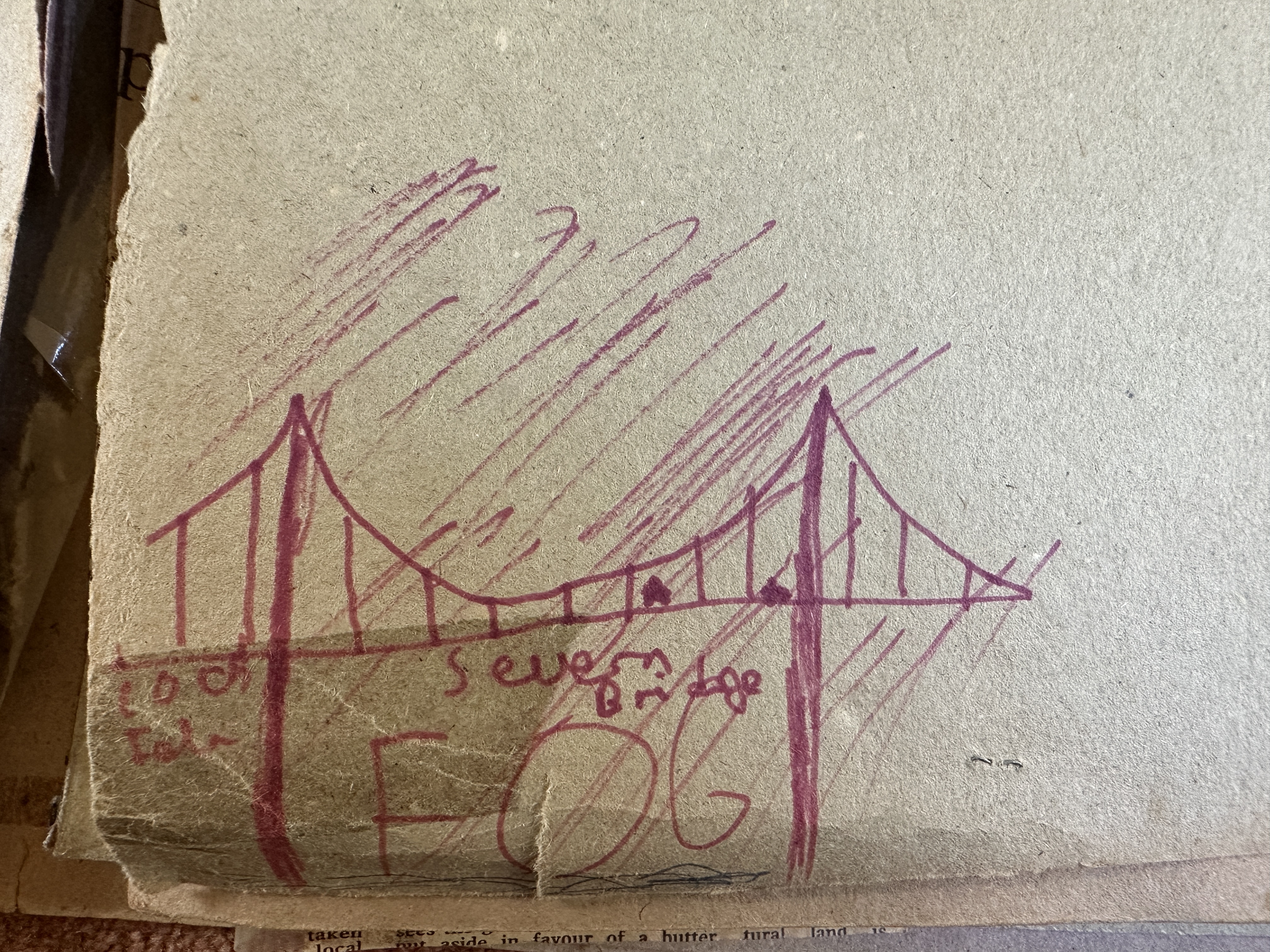 During the three day school half term, on Monday 10 February, Mum and Dad took me to Bristol for the day. If my scrapbook sketch is anything to go by, it was a foggy day. As a book lover, it was no surprise that my favourite part of the day was going to George’s bookshop, on Park Street. According to blogger Sue Purkiss, George’s dated back to 1847, so I was entering hallowed territory that foggy February day. At the time I was a big fan of Jackdaw children’s folders, a fascinating series of folders that illustrated historical topics with facsimiles of related documents. I received the Battle of Britain one Christmas, which included a wartime identity card and a 1940 Daily Mirror. I added my late grandfather’s real second world war identity card. I wouldn’t be surprised if I bought another Jackdaw at George’s. All I know for sure is that I took one of the bookshop’s bookmarks, as it’s in my scrapbook with the date on it. Sadly George’s is no more, like my old Cardiff spiritual home, Lear’s bookshop in Royal Arcade.