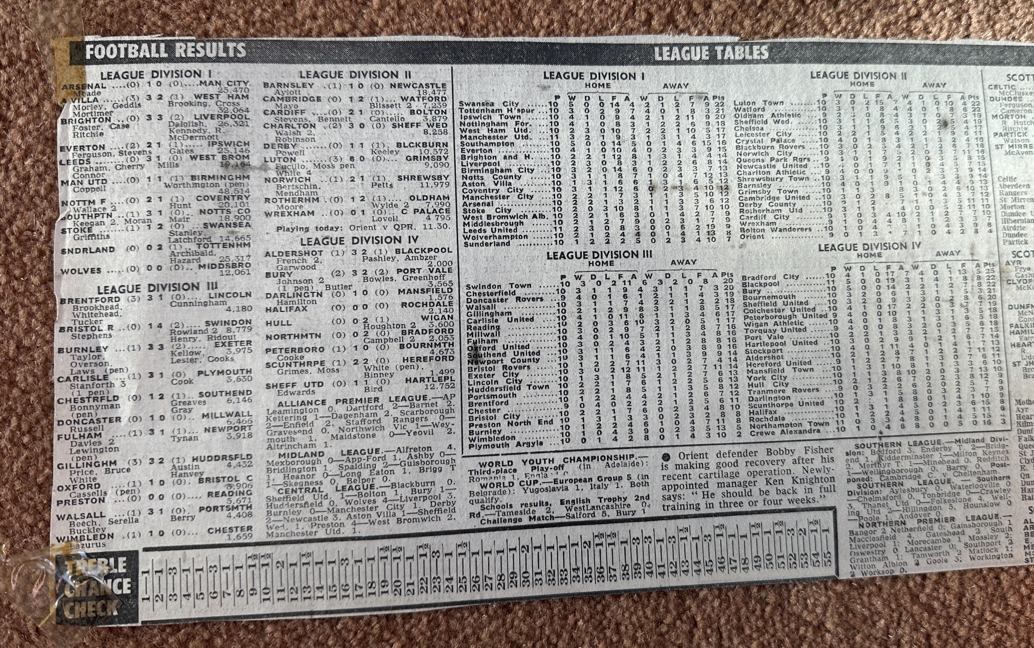 The last football memory from my scrapbook is from 1981. Just look at that division one table, the equivalent of today’s premier league. Swansea City are flying high in their first year in the top flight. Ipswich and Nottingham Forest are also in the top four. Earlier that month, Swansea had played Liverpool at Anfield just days after Liverpool’s legendary manager Bill Shankly died. Shanks had signed Swans manager John Toshack from Cardiff City 11 years earlier. On that emotional day, Toshack wore a Liverpool shirt before the kick off in tribute to Shankly. The gesture caused some controversy with supporters of both clubs, with Toshack seen by some as grabbing the limelight.