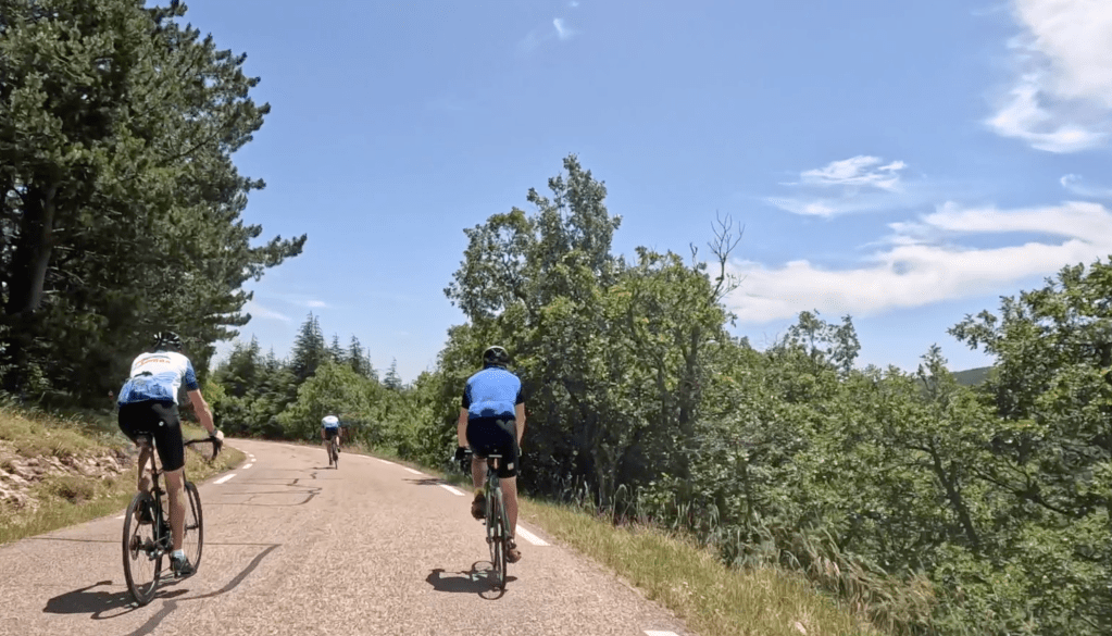 We were tackling the ascent from Malaucene, which was about nine miles from our start. Soon after leaving Vaison a large group of us missed the planned Peak Tours route to Malaucene. This was a classic case of group think: Pat was leading the way, and we followed him and ignored the Garmin beeps to turn left. To be fair, my Garmin had given me so many false turn alerts that I was almost conditioned to ignore them. As a result, we had a fast ride to Malaucene along a busy road. Some of the faster riders reached the town after us, having taken the ‘proper’ route. ‘What kept you?’ we joked.
