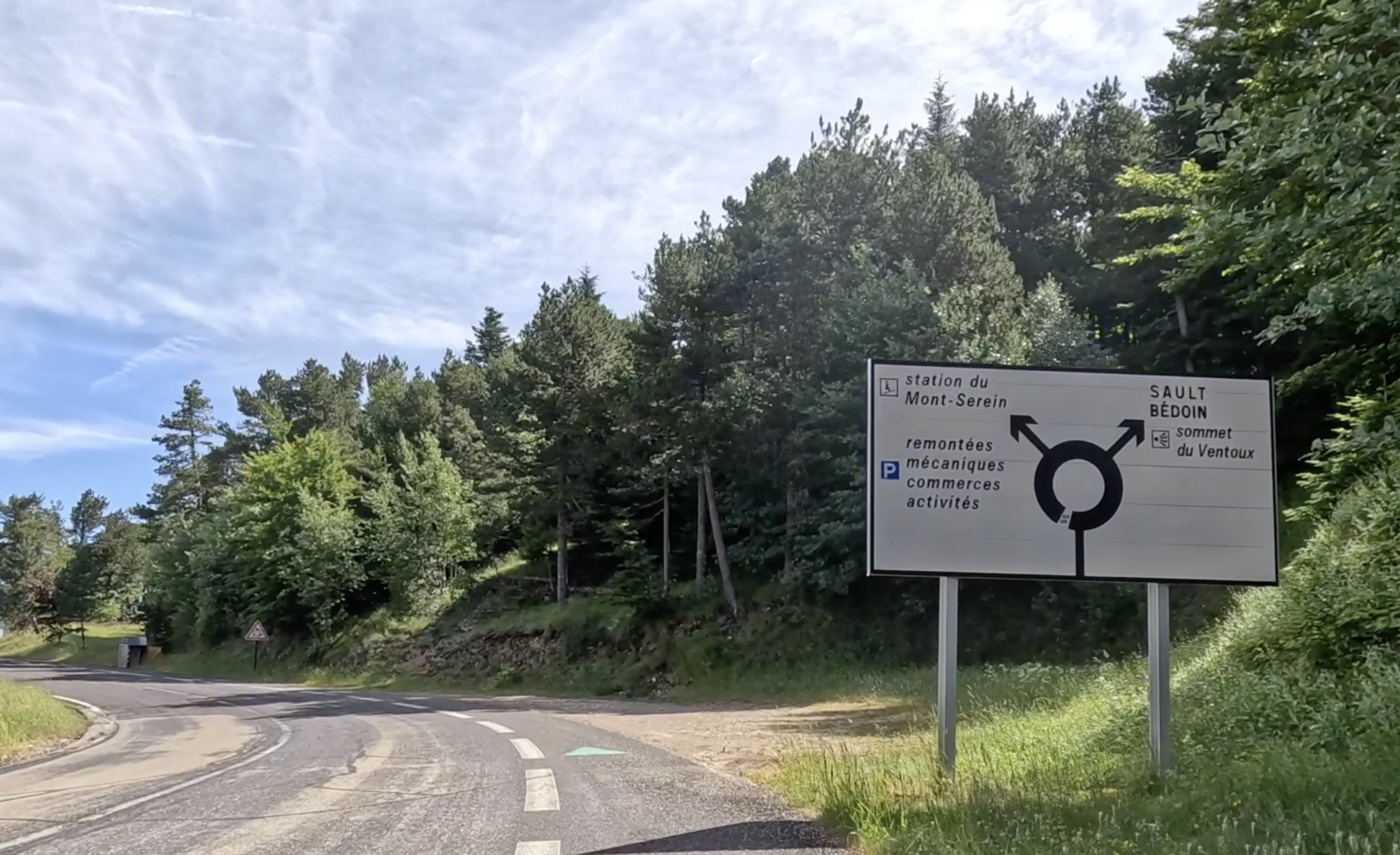 At last we began our climb of the Giant of Provence. We saw a panting dog out for a walk, which made me wonder how thirty I’d get on my way to the summit. The sign proclaiming: Col du Mont Ventoux OUVERT (open) confirmed there was no getting out of it now.