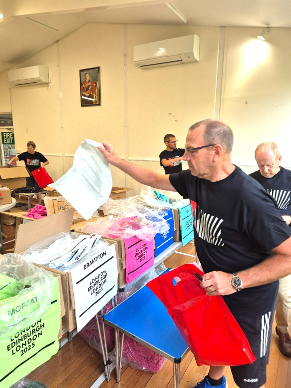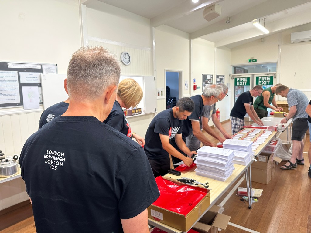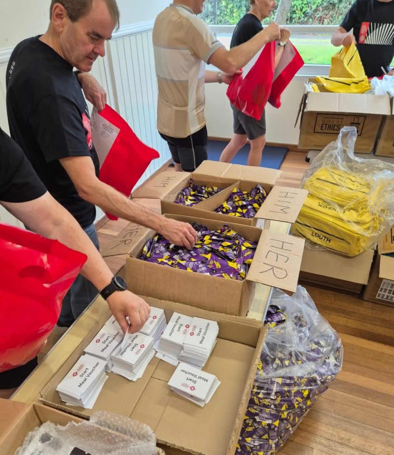 What really struck me was the dedication of all the volunteers taking part. Apart from a short break for a delicious lunch provided by Liam and helpers, they barely paused during the eight hours it took to assemble and pack all the rider bags. They snatched drinks as they worked.