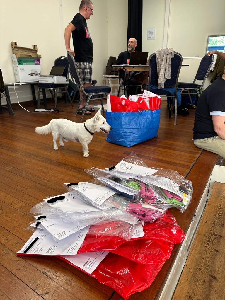 Riders could pay for a further two bag drops, as well as event merchandise such as LEL jerseys, caps and teeshirts. The volunteers had to make sure each rider’s pack included these extras. (A small number of riders chose not to have any bag drops.) The rider jerseys came in multiple sizes as well as male and female versions. Attention to detail was essential in assembling the packs.