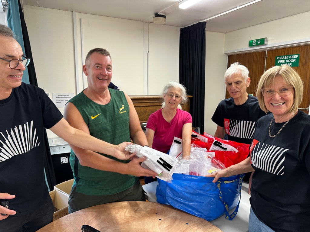 Flaunden village hall was a hive of activity when I arrived just after 9am on a grey Sunday morning. Danial, Liam and Tim had done a lot of preparatory work the day before. Around 35 people had volunteered to help, including making teas, coffees and lunch for those putting the packs together.