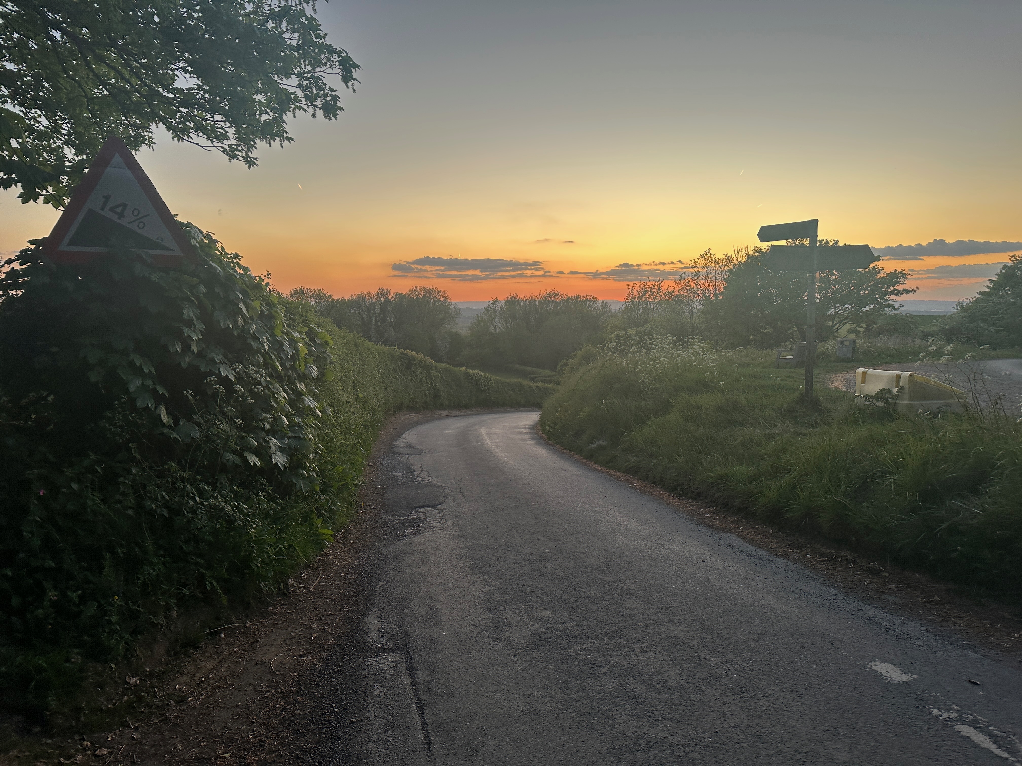 I completed LWL an hour faster than in 2024, and was amazed how much better I looked at the finish this time – as the photos above show! My favourite moments were crossing the Severn Bridge on a lovely late spring evening, and climbing to the Somerset Monument at Hawkesbury Upton, Glos, in the light. I don’t know for sure why I love LWL – is it the route, the organisation (kudos to Liam) or am I just suited to 400km rides that happen to start just a few miles from home? After the mighty effort of cycling 254 miles, getting a six minute lift home after finishing is very attractive!