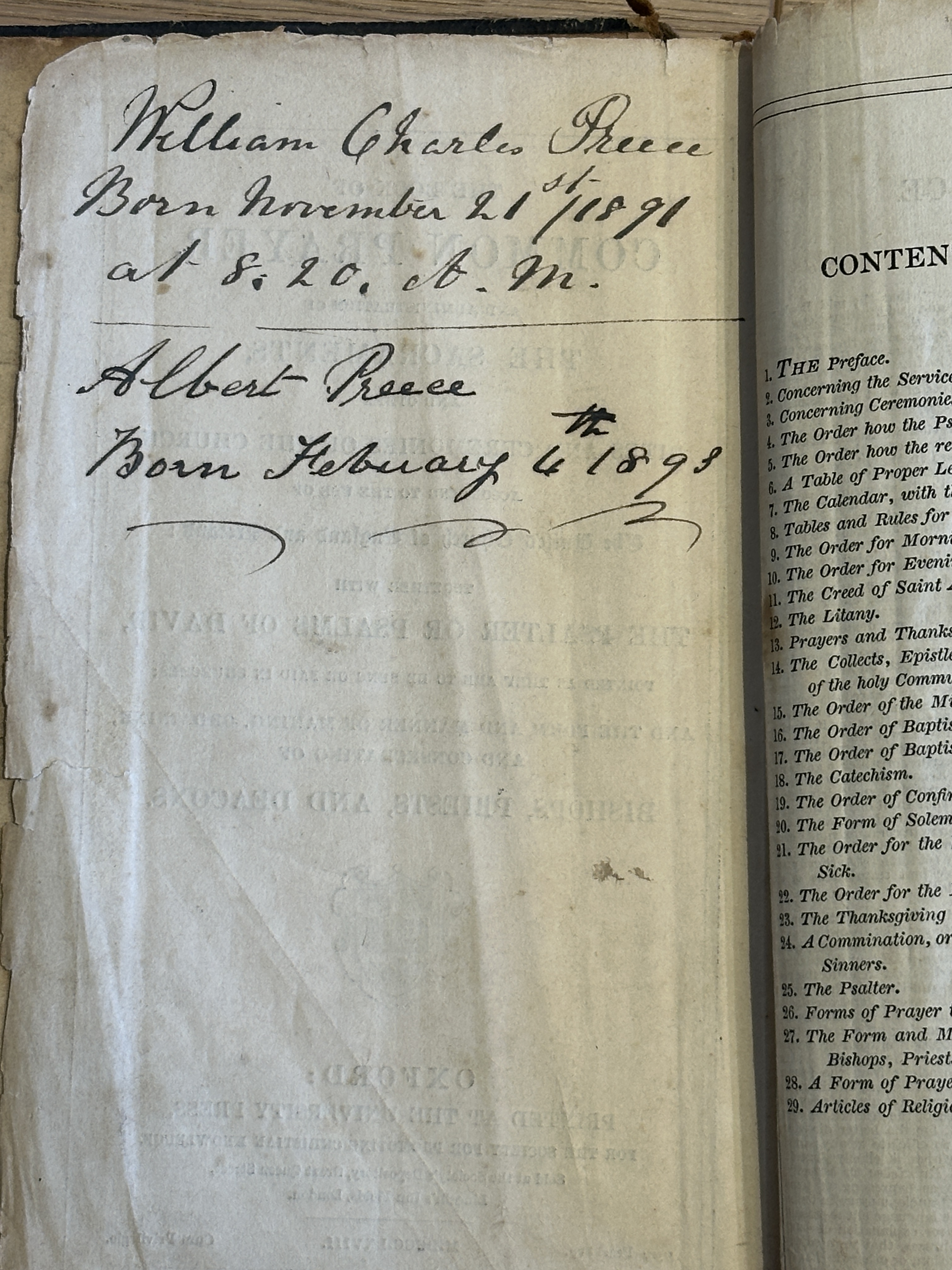 On the second page of the Bible is the above record of the births of Elizabeth Preece’s children, William Charles and Albert, my grandfather. I was keen to find out more, and that could only be done online as my mother’s family knowledge died with her in 2018.