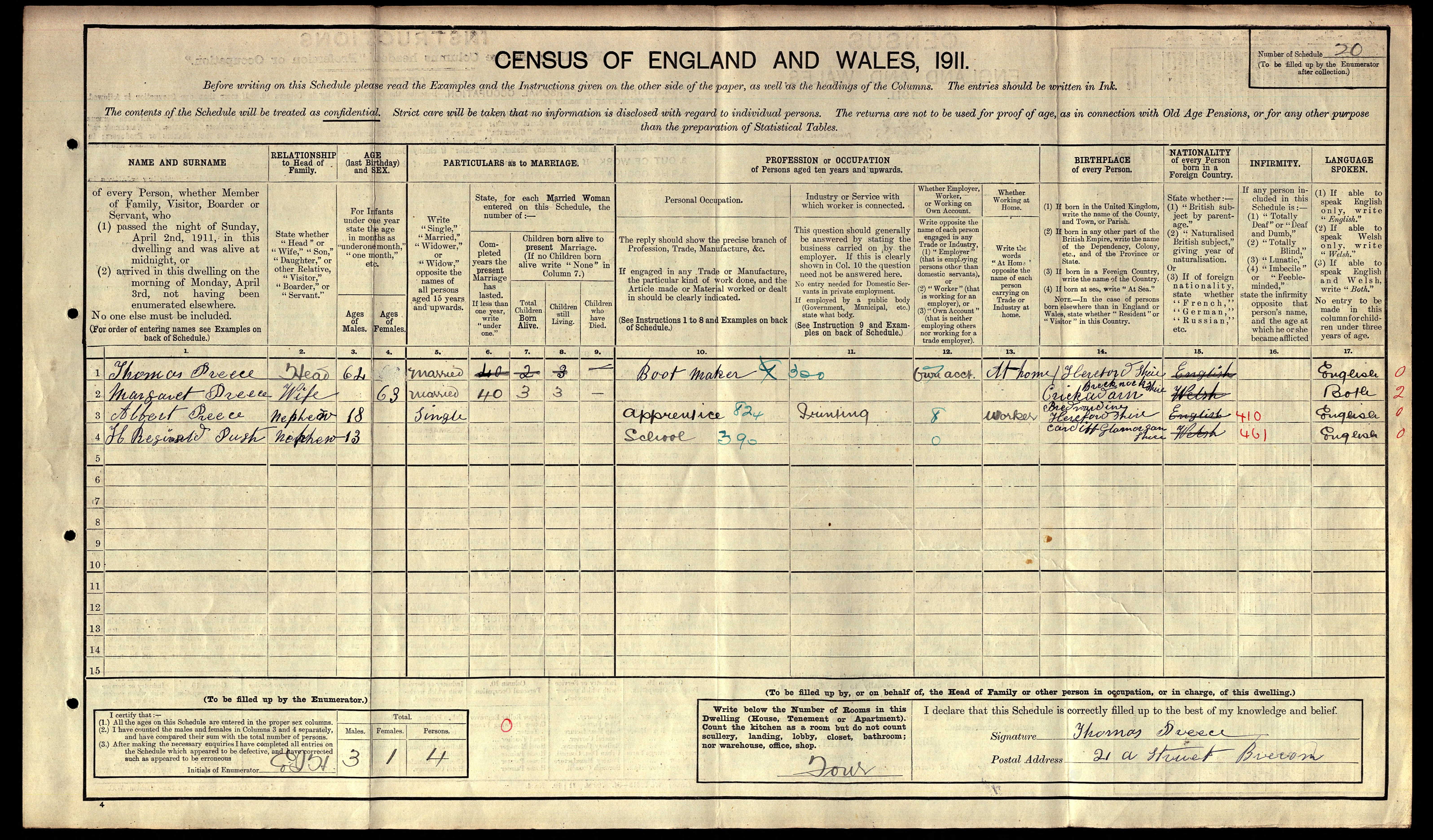 How could I find out for sure? The 1891 census showed that he was born in 1845 in Bredwardine. So far, I have found several deaths recorded for men named William Preece in Herefordshire during the first decade of the 20th century, but without enough details to be sure any of these record my great-grandfather’s passing.