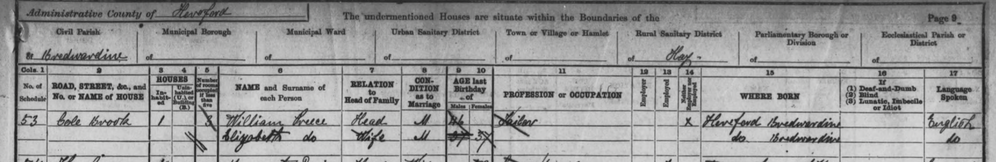 I knew my grandfather was born in the lovely border village of Bredwardine, but was sure I’d seen a reference to his living in Brecon. Was that on another book or document that was lost when my parents cleared out the house in Penarth after Grandma died? As no one alive today could offer any clues, the next step was to consult census records.