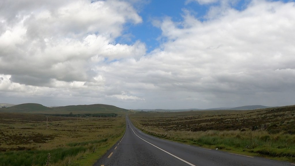 The road from Buncrana climbed steadily for around seven miles, the last long ascent of the tour. After this we had a blissfully long section of fast road towards Carndonagh. I savoured the wide open landscape (seen above) as I raced along at up to 36 mph.