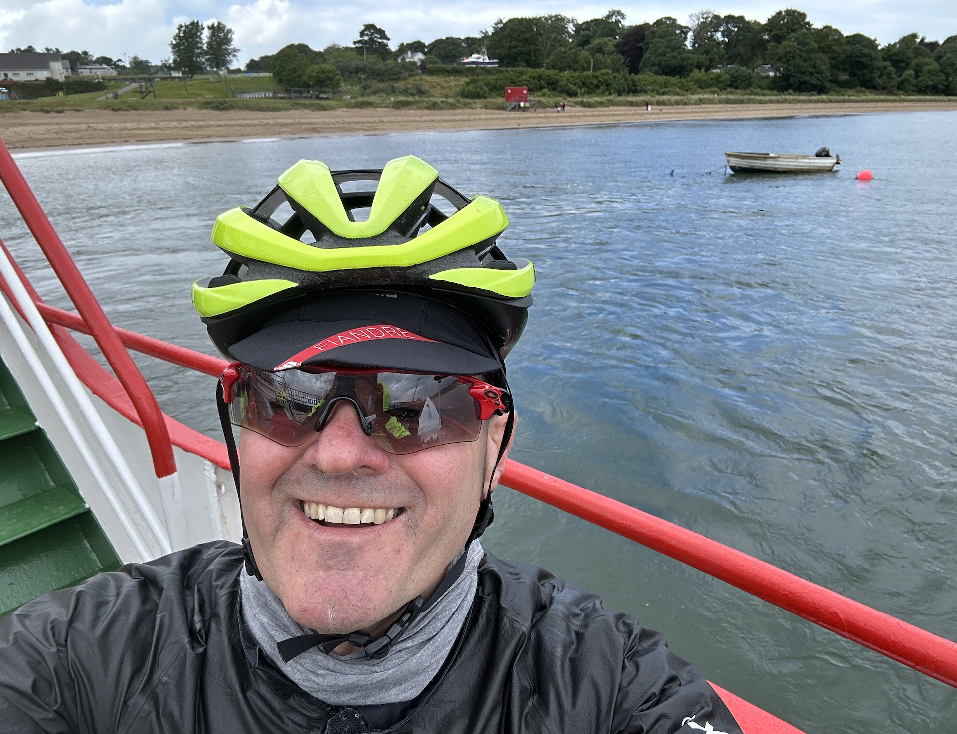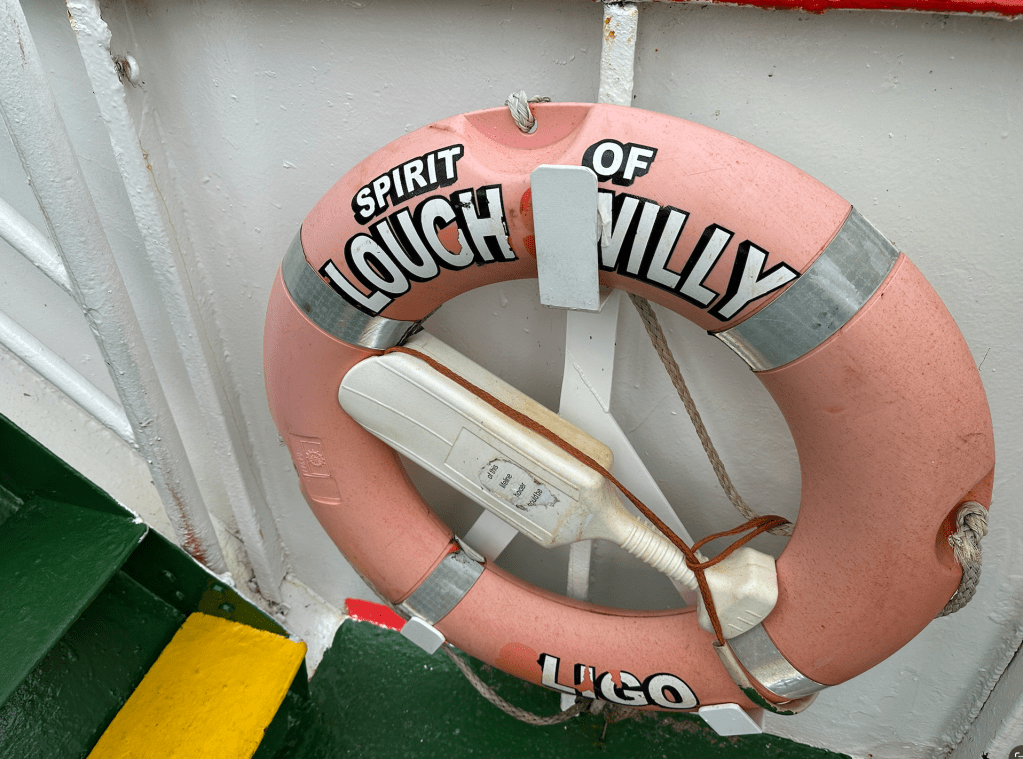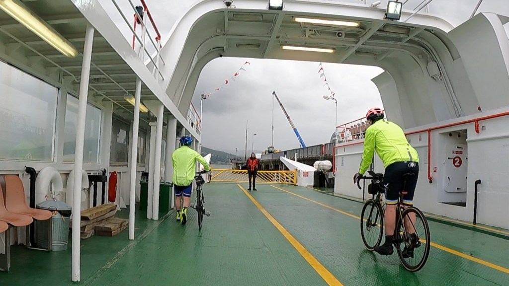 We had one short, steep climb after lunch as we made our way to the Rathmullan to Buncrana ferry across Lough Swilly. I was surprised to see someone on an old bike pulling a trolley at speed – no mean feat. It was a pleasure to cycle along the lough to the ferry terminal, where we waited for a short time as it crossed towards us.