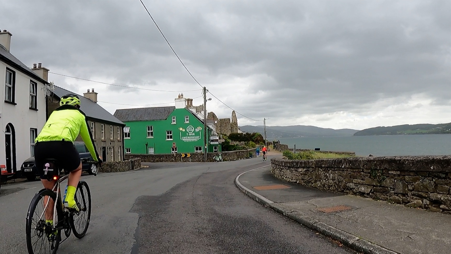 We cycled through Bundoran, a sad-looking seaside town, seen above. I shouldn’t be too harsh – I first visited Bondi Beach in Australia on a similar wet day in 2000 and thought it looked like Barry Island in Wales in winter. I stopped briefly to take some video so today’s highlights video would give a fair representation of our experience.
