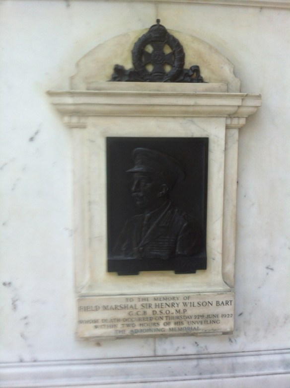 Even fewer will look at the small memorial below it to Field Marshal Sir Henry Wilson, above. Yet it hints at a terrorist atrocity that shocked Britain 90 years ago this year.